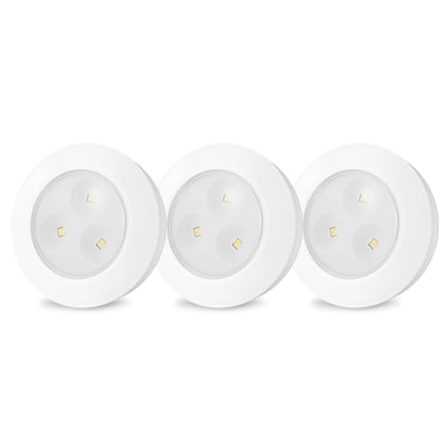 ?Portable Size for Anywhere?– Add light anywhere you need it with this 3 pack of LED puck lights. The LED puck lights are only 1" thick so they can easily blend in under your cabinets and make it your under counter lights, countertop, bookshelf, bathroom vanity, pantry or closet.