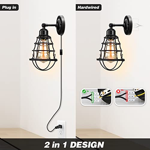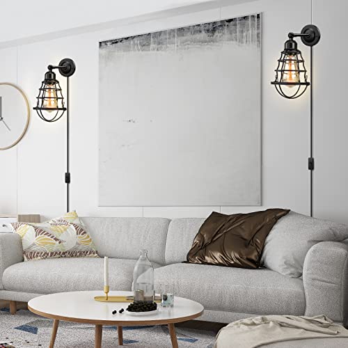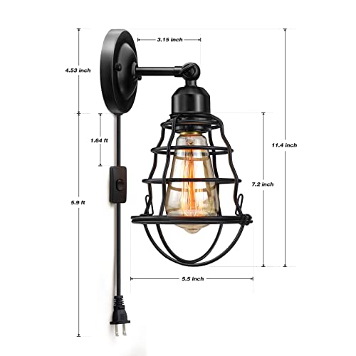 2. EASY INSTALLATION: Plug and Play, 180 degrees to adjust the angle you need, industrial wall sconces lights your home all the day as perfect decoration. 2-in-1 plug in wall light, you could also remove the 70.87" cord to keep clean look.