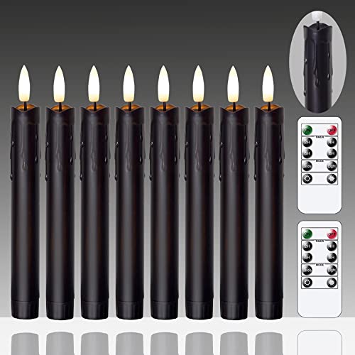 What You Get: You will receive 8 black flameless taper candles (2 AA Batteries, Not Included), two remote control(Batteries Included) and one manual.The LED taper candle is 7.5 inch high and 0.86 inch in diameter. We use plastic material to make the Battery taper candle more firm and not easily crack