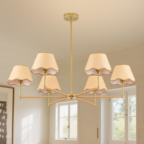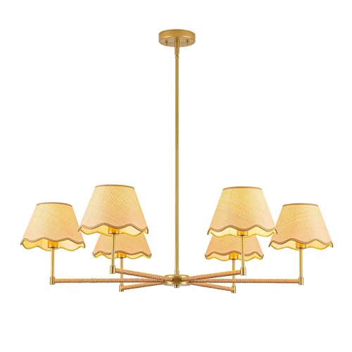 [Farmhouse Rattan Chandelier] This 38-inch boho chandelier features a handwoven rattan lampshade and gold metal frame, blending modern boho charm with rustic elegance. Perfect as a pendant light for kitchen islands, dining rooms, or bedrooms, adding natural texture and warmth to your space.