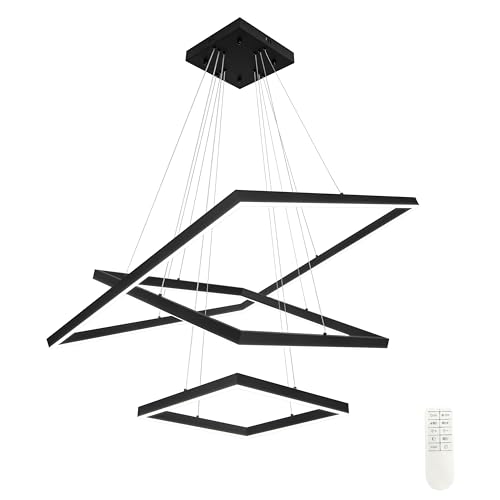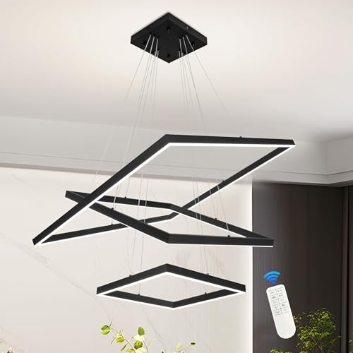 [Adjustable Height]: Modern black square pendant light has an adjustable ceiling wire from 1 inch to 78.7 inches, you can adjust the length according to your preference and ceiling height, modern LED high ceiling pendant light allows you to enjoy elegant and stylish art pendant light and unique lighting effect.