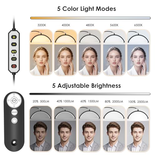 5 ???????????????????? ???????????????????????? & ???????????????????????????????????????? ???????????????????? - Our lash lamp features 5 temperature color settings: 6500K - 5600K - 4800K - 4000K - 3200K; 5 brightness settings: 100%, 2500LM - 80%, 2000LM - 60%, 1500LM - 40%, 1000LM - 20%, 500LM, from warm to cool, soft to super bright, which help you see all the little details was missing. On/Off button retains the last settings. Premium 192 LED bulbs that NO shadow and glare from the light.