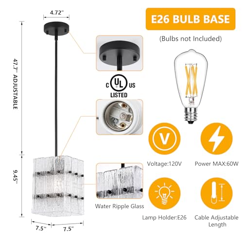 High quality materials and medium size: This island pendant lights can be adjustable height,medium size,and thick hand-made water ripple glass.UL Listed wires and lamp holder safer and more reliable. Suitable for any spaces, no matter where placed, can provide functionality and fashion sense.