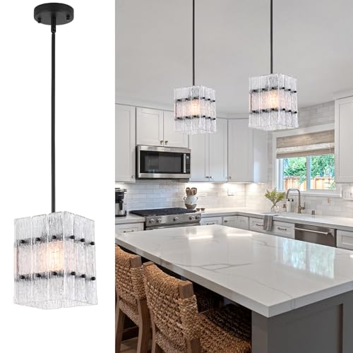 Modern and Simple Design: This exquisite Black Crystal Pendant Light, featuring handcrafted water ripple glass that adds a touch of elegance and charm to any room,modern design and nature-inspired ambiance with this unique glass chandelier offering a stunning focal point for your kitchen island or dining area.