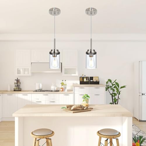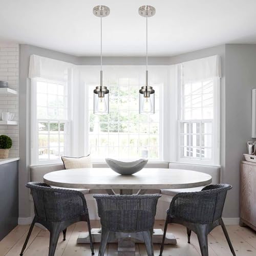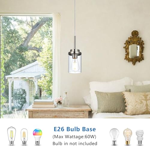 Adjustable Height: The hanging wire of kitchen pendant light can make shorter to meet your personalized decor requirement. The bottom of the cylinder glass shade is open and easy for bulb changes