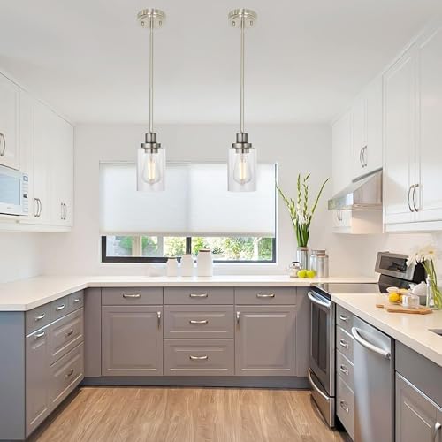 Style: This single pendant light is proud to introduce a brushed nickel finish accented with clear glass mini pendant. provide a timeless vintage touch and a clean modern aesthetic for your space it is a perfect choice over your kitchen island, dining area, bars