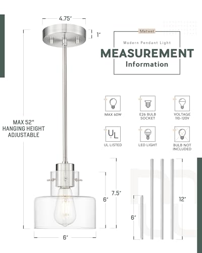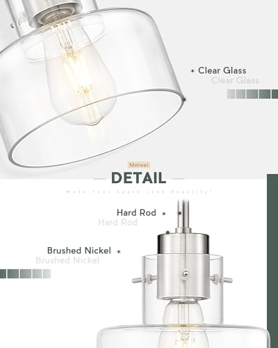 Inspired Design: This pendant lights kitchen island features a sleek, minimalist design with a clear glass shade and sturdy brushed nickel metal. Its clean lines and contemporary style make it an excellent choice for any modern home décor