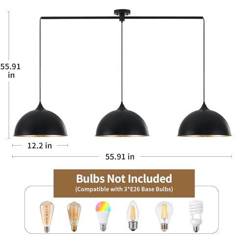 Dome Pendant Light Size?55.91*12.2*55.91 inch. The pendant lighting for kitchen island is compatible with any E26 base bulb (bulb not included), the 60W lamp can get a good lighting effect, and you don't have to worry about the light being too dark to illuminate your space. You can also choose different shapes of bulbs according to your preferences to create the ideal atmosphere.