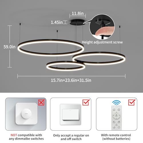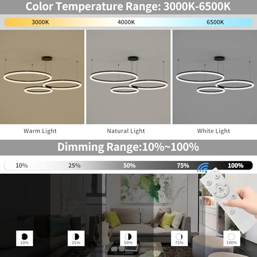 Adjustable Color Temperature Chandelier: This industrial LED modern chandelier can enjoy custom lighting by remote control, the color temperature range is 3000-6500k, the brightness adjustment range is 10% to 100%, The light adjustment is silky smooth and has a memory function