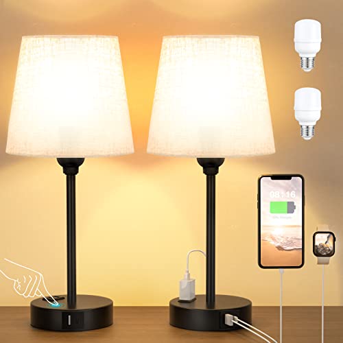 ???????? Two FREE Bulbs Included: You will receive 2pcs E26 LED bulbs (worth 20USD) for free. It helps save your time and money on buying two extra bulbs for the bedroom nightstand lamps set of 2. The free bulbs is 2700k comfortable brightness with no flicker, no buzzings and no mercury. 6 watt full size is bright enough for your living room/bedroom/kid's room/older's room.