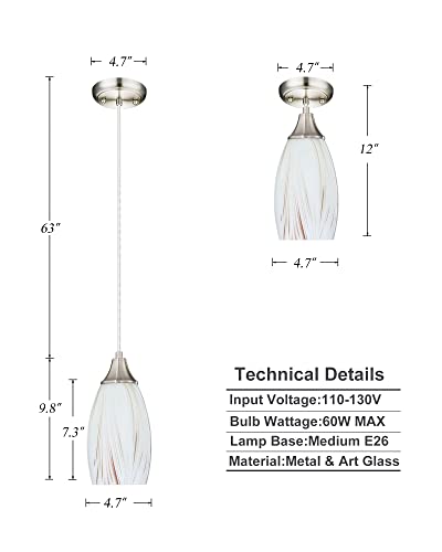 Unique Art Glass Patterns:This mini glass pendant light fixture is Hand-blown unique coffee blown pattern Art glass, due to its hand-made nature, each piece of blown glass will vary in color and pattern.