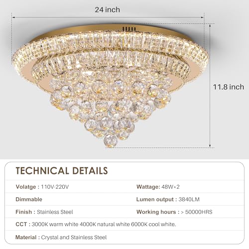?High-Quality Materials?This LED ceiling light fixture were LED chips has already included, high-quality K9 crystals and stainless steel to prevent rust and color fading is easy to maintenance and clean, can help you saving the energy bills.