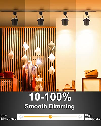 ????DIMMABLE AND ENERGY-EFFICIENT: Our 10W LED track lighting heads provide 1000 lumens of real output each, equivalent to 60W halogen bulbs, and dim smoothly from 10% to 100% with a dimmer. Save energy and adjust your lighting to your liking.