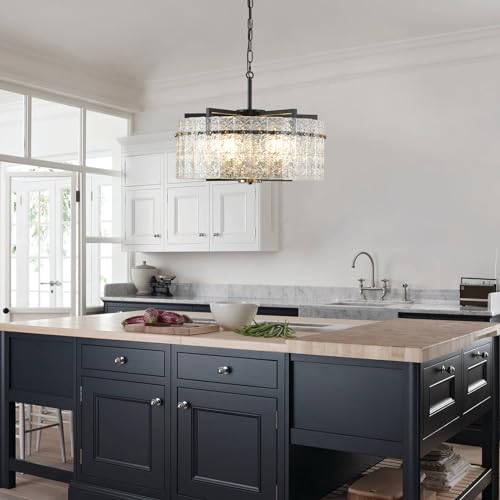 ADJUSTABLE HEIGHT - The diameter of the kitchen chandeliers over table is 20.47", the height is 16", and the total length is 77", is paired with a 61" chain, you can adjust the length according to your personal preferences for hanging, with soft lighting, for your plus to create a beautiful atmosphere.Our modern crystal chandelier is ETL certified, guaranteed quality and safe to use