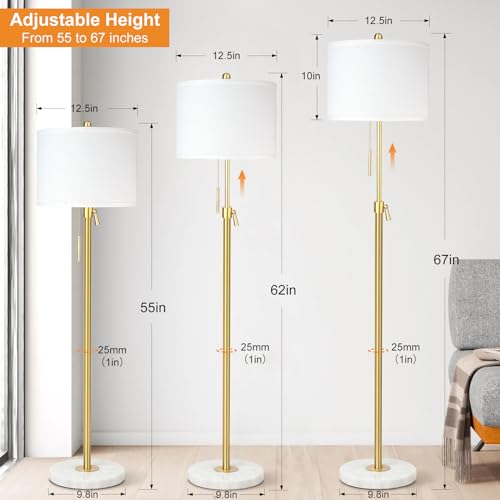 ?Marble Base Floor Lamp with Pull Chain Switch?: Can adjust the height between 54” and 67”, 12.5" wide x 10" diameter base, accommodate various spaces, make it the perfect home decoration. Suitable for living room, study room, guest room, bedroom, etc.