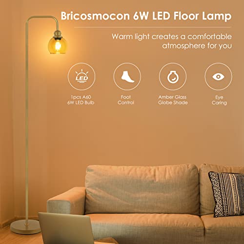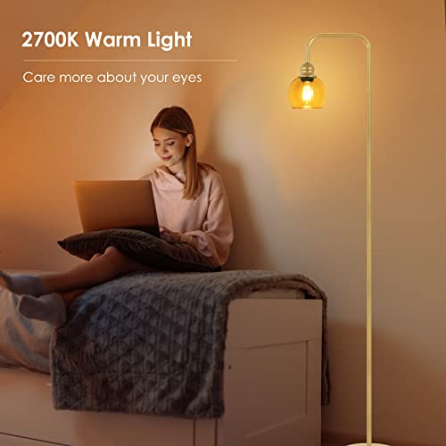 Fashion Design and Gorgeous Glass Decorate: The LED floor Lamp is 63.2 inches high, with hanging Amber globe glass shade(D5.12 In). Fashion industrial design and good light distribution can better protect your eyes. the brass floor lighting create a warm and gorgeous feeling for your home by 2700K warm white light. Suitable for any style from traditional Christmas to mid century modern decor of living room, bedroom, kitchen, office and farmhouse.