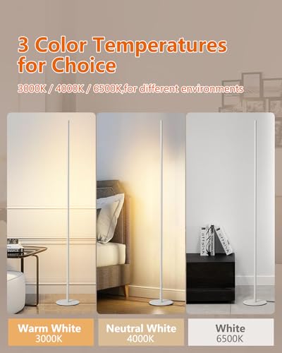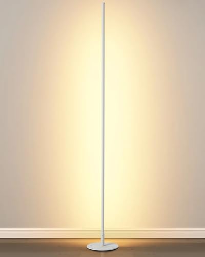 Modern Floor Lamp Led Standing Corner Lamp White Decor Contemporary Metal Floor Lamp for Living Room Bedrooms with Remote & Touch Control