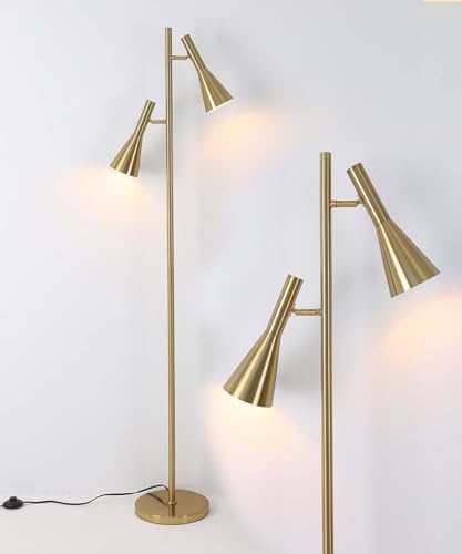 ?Perfect Design?This modern floor lamp has 2 metal lamp heads of the tall floor lamp for bedroom can be rotated by 350° left and right and adjusted by 90° up and down. The floor lamp features with 2 Independent lampshade. You can place the light next to your couch, point the metal heads to each seat on the sectional and have many people reading at once.