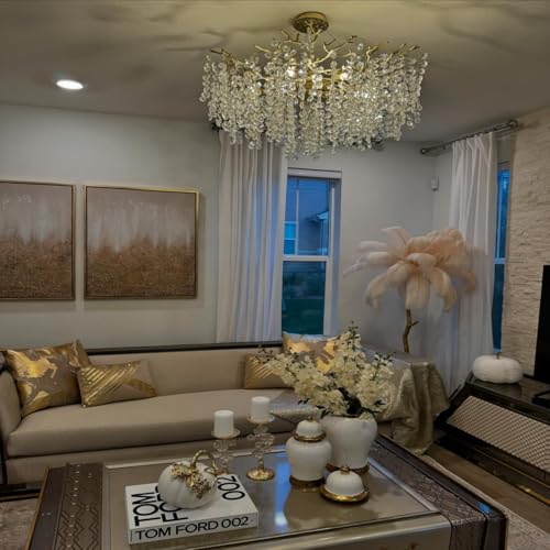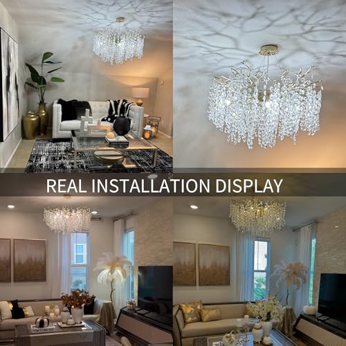?????Easy Assembly & Adjustable Design?With a size of L30" x H16" and an adjustable cable length of 0-66 inches, installation of the round chandeliers for dining room is effortless. The aluminum alloy branches on the gold chandelier are lightweight yet sturdy, easily removable, and assembled. Hang the crystals, ensuring the front side faces up. Refer to the instructions for guidance