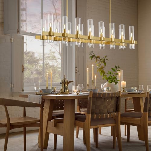 Applicable Space: Rectangular chandelier for dining room with dimmable bulbs, delicate chandelier structure enhances the beauty of the space, glass tube lampshade creates a soft light atmosphere, rectangle chandelier is suitable for dining room, kitchen, living room, dining table, hotel, office, meeting room and so on
