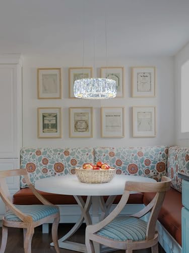 ??Elegant Crystal Chandelier for Dining Room?High quality & contemporary design: This crystal chandelier hanging combine with double - sided clear crystal and stainless steel. Stainless steel design makes this crystal chandelier richer in refraction surface, K9 crystal faceted cut, as dazzling as diamond, that is modern and luxurious, ideal for furniture decoration lamps.