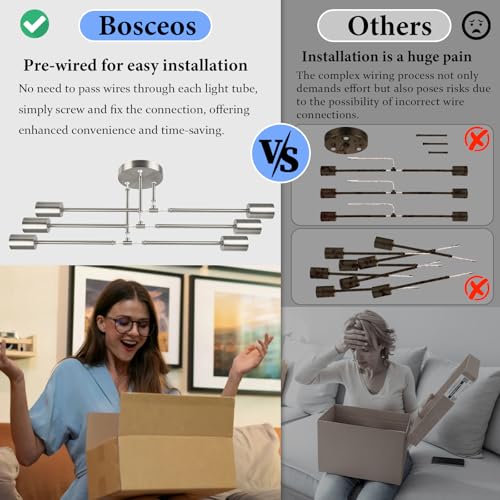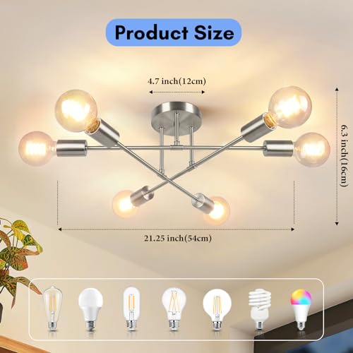 ?Modern Sputnik Chandelier Decor your House?This semi flush mount ceiling light comes with sputnik style and modern geometric shape, combining the style of modern and retro. And this rustic ceiling lighting fits any home decor style, creating a comfortable and modern ambiance in your house. In addition, it is an ideal decorative lighting fixture for bedroom, dining room, living room, hallway, kitchen, beauty salon, bar, coffee house, etc.