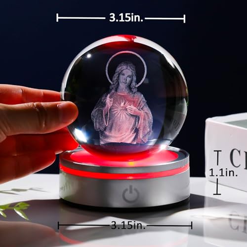 Materials & Size - The diameter of the crystal glass sacred heart of jesus statue is 3.15". The size of the LED base is 3.1*1.1in". It features a 3D stereoscopic display and is made with high-quality K9 crystal. The Jesus figurine is clear without any bubbles inside, making it more transparent and glossier.