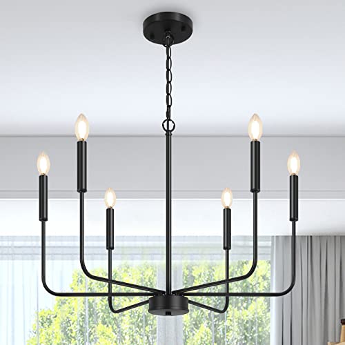 ?Farmhouse & Modern Combined Style?The 6- light chandelier lighting fixture is inspired by the candelabra, composed of 6 evenly candle-shaped stems, crafted of metal, black finished, combined classic and modern perfectly. Brings classy looking to your home, idea for home decor. Long life-span, can be used for years.