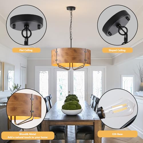 Unique Traditional Design: This Hardwire chandelier crafted from matte black elegantly simple arms with a distressed woodgrain finish metal frame, it exudes a rustic antique allure, infusing your dining room with an industrial-retro charm,not only adds a touch of vintage elegance to your home decor but also ensures optimal lighting