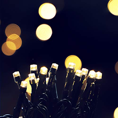 ?High Quality Christmas Lights: MYGOTO Warm White string light is 33ft 100 LED with green wire, Christmas string lights are made of 100% Commercial grade bulbs, 30V low voltage plug with UL certified for safe use. Ideal for Christmas, wedding, party, store, bar, mall, home decoration, living room, backyard, fashion show, club, etc.