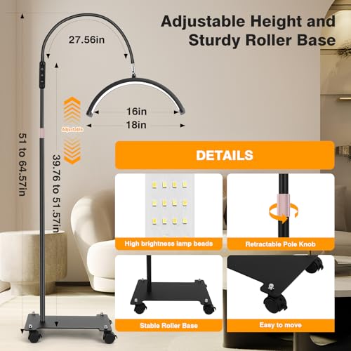Mobility and Height Adjustment: The metal base measures 12.8" x 8.7" (L x W), ensuring the stability during use; equipped with four lockable wheels on the base, making the lash lamp easy to move and keep in place. The height of the eyelash lamp can be adjusted from 51" to 64.57" by loosening and tightening the rose gold metal ring.