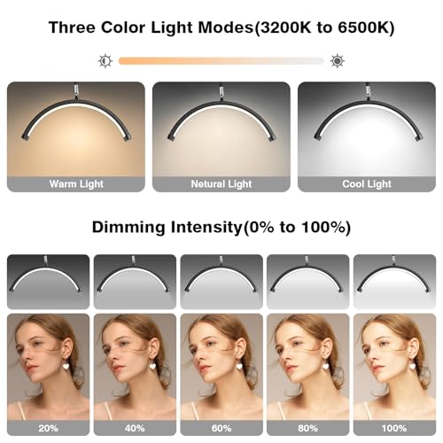 Versatile Lighting Modes: Mznoo half moon light is ideal lighting for lash extensions, nail art, tattoo art, craft, etc.. It can adjust light modes from warm to cool providing five color temperatures(3200K, 4000K, 4800K, 5600K and 6500K); in addition, each color temperature has five brightness levels with the maximum lumen of 2500LM, you can choose the perfect light mode for your needs.