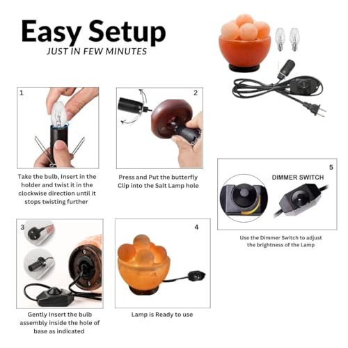 Comes with Dimmer Switch: Our dimmer control switch helps adjust the brightness level of the salt lamp to suit your mood. Whether you'd prefer a luminous glow for reading and relaxing, soft illumination to lull yourself to a deep sleep or for any level in between you can choose your perfect setting.