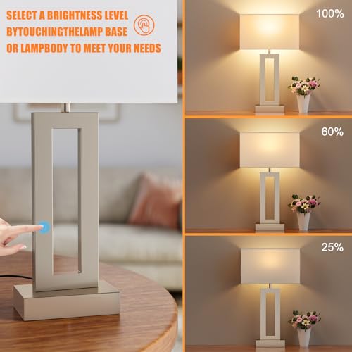 ?3 Way Dimmable & Touch Control?This lamps for bedrooms set of 2 offers 3 levels of brightness (low-medium-high). With a simple touch on the table lamp body or base, you can effortlessly adjust the brightness to create the perfect atmosphere for any occasion. Whether you want to relax at 25%, indulge in a captivating read at 60%, or illuminate your workspace or gaming area at full brightness, these bedside lamps set of 2 have got you covered.