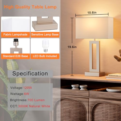 ?E26 LED Bulbs Included? No need to worry about purchasing separate bulbs for these exquisite bedside lamps. We have gone the extra mile by including two premium E26 LED bulbs that perfectly complement the 3-way dimmable nightstand lamps set of 2. Experience lighting perfection with our nightstand lamps that boast a flicker-free, glare-free, and ultra-quiet operation. Indulge in the tranquil ambiance and be captivated by the mesmerizing glow that these lamps effortlessly emit.