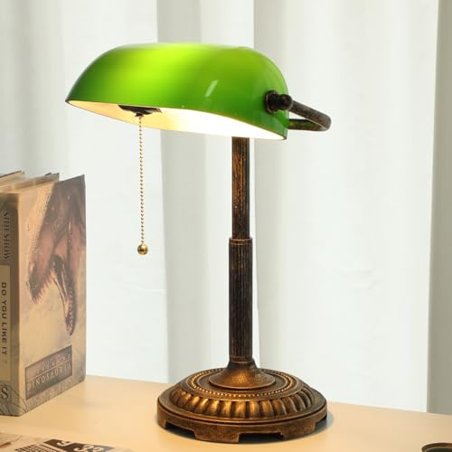 ?Minimalist Design for Home?This bankers desk lamp with the minimalist design, makes it be a perfect addition to your home.The emerald green glass shade and antique black/gold color is perfect to decorate anywhere at your house, this banker's lamp perfectly fits any room decor from modern to vintage.
