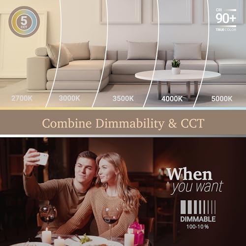 5 Color Changing Temperatures — Set the color temperature of these black wafer lights to: Soft White 2700K, Warm White 3000K, Neutral White 3500K, Cool White 4000K, and Daylight 5000K.