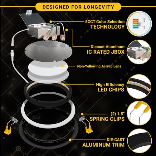 Wide Applications — Use this swivel spotlight recessed light for both residential and commercial applications. Quickly install this 4” LED recessed light remodel kit anywhere you need it.