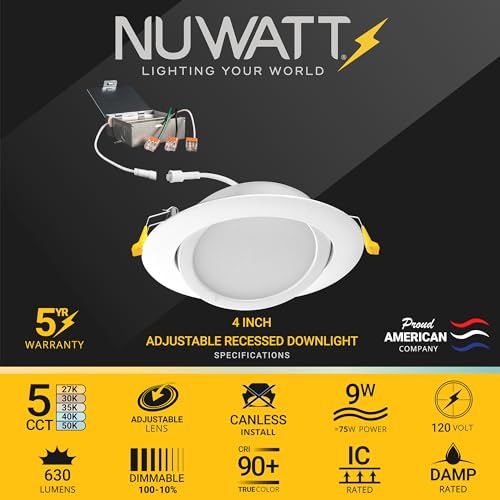 Adjustable LED Lens — The NuWatt recessed gimbal downlight allows for a 30 degree tilt, left or right, making this 4in gimbal LED canless light ideal for sloped ceilings.