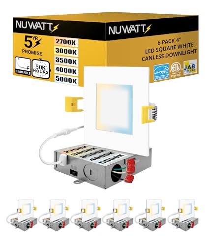 5CCT SELECTABLE: The NuWatt Square LED 4 Inch Ultra Thin Recessed Light offers a 5-in-1 CCT Selectable feature, allowing you to choose from a range of color temperatures. The tuneable white features ranges from 2700K Soft White, 3000K Warm White, 3500K Neutral White, 4000K Cool White, or 5000K Daylight. You can effortlessly customize the lighting to suit your preference and create the perfect atmosphere for any occasion