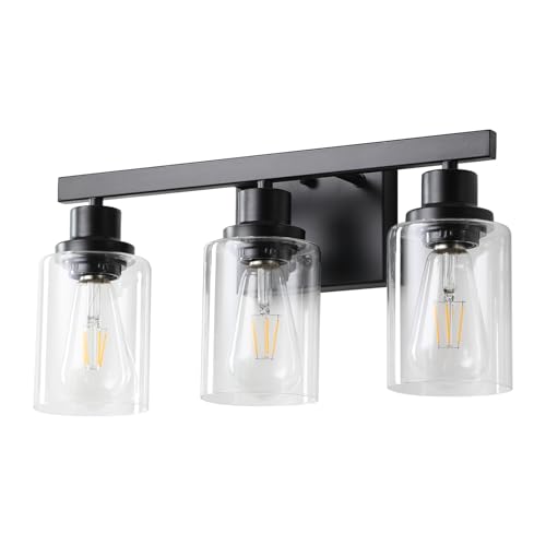 MODERN & ELEGANT DESIGN: Our 3 Lights bathroom vanity light was created by professional designers for a sophisticated design with a modern twist. Featuring a sleek black matte body with a clear cylindrical glass shade, this sconce is perfect for any style, from contemporary to rustic. Gorgeous bathroom sconces add a splash of color to your home and are perfect for home lighting