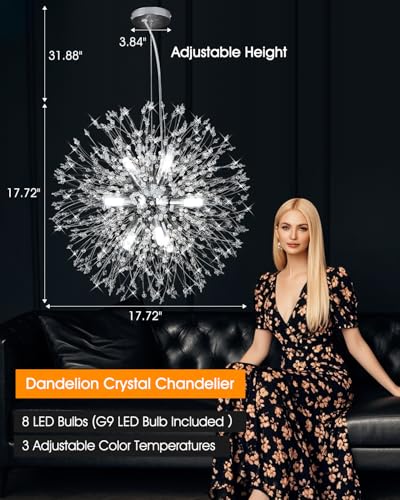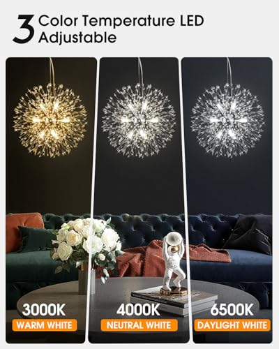 Elevate Your Space: Transform inefficient and monotonous lighting atmosphere with our adjustable height crystal chandelier, color temperature themes to suit dining room, living, bedrooms, kitchens, offices, and more. Dreamy, modern, and elegant, with a dandelion-like charm to upgrade the decor of homes, hotels, cafes, and other commercial spaces
