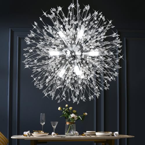 Dandelion Crystal Chandelier: Our fireworks crystal chandelier, which has undergone strict quality testing, exudes an air of elegance and sophistication, it ensures long-lasting durability without causing visual strain. The light filtering through the crystal strings creates a unique, pristine ambiance, Enhance your living space today with this stunning chandelier