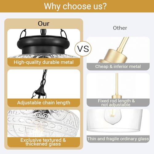 ?Modern Style Design?The handblown textured glass and matte black finish add a touch of luxury to dining rooms, creating a warm, high-end ambiance for meals and entertaining. Ideal for 47–71 inch tables(covers standard 4–8 person), it provides balanced illumination over medium to large kitchen islands, dining tables, or bars, ensuring both functionality and style
