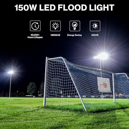 Super Bright & Energy-Saving: This 100/150 W floodlight can replace a 500/750 W incandescent bulb, saving up to 80% on energy, so you don’t have to worry about high electricity bills; with a super bright 9000lm brightness, it can be used as a spotlight for illuminating large areas