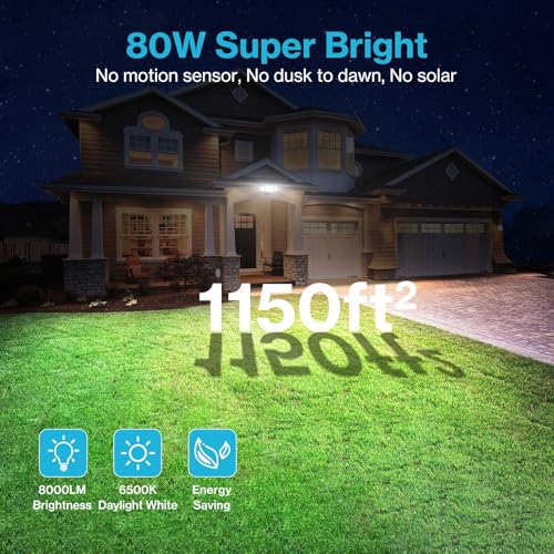 Wide Compatibility: With support for two installation modes - wall mount and eave mount - these lights can be installed in any desired location. Perfect for illuminating backyard spaces, garages, patios, porches, eaves, entryways, workshops, and large outdoor areas