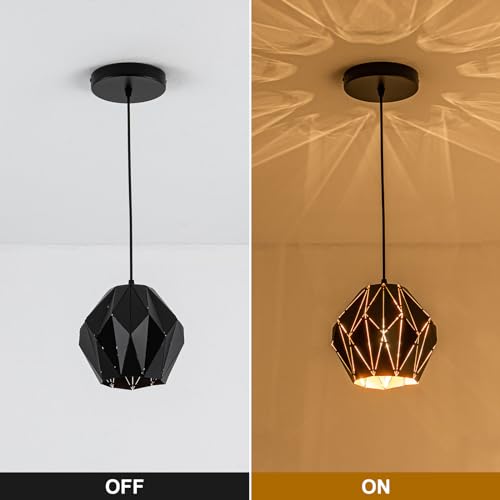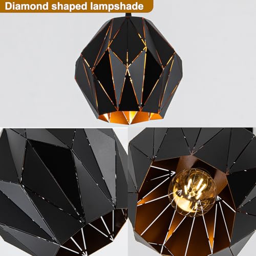 ?Diamond-Shaped Design?Pendant light for kitchen island is made of high-quality metal, sturdy and durable. The surface of the matte black lampshade is processed by advanced wire cutting process. The bright light reflects unique light and shadow effects through the geometricdiamond-shaped lampshade.