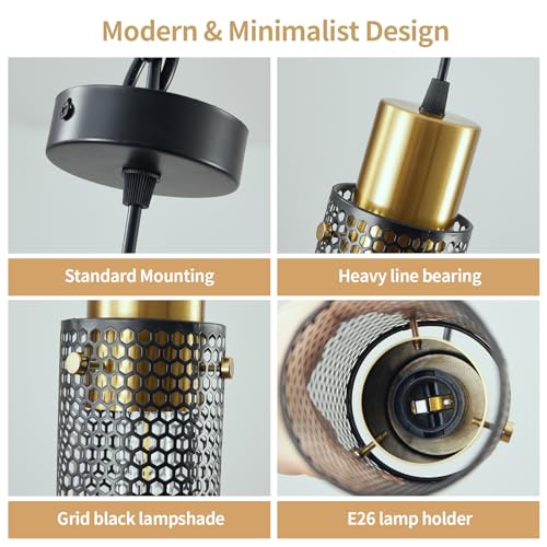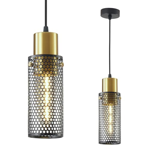 ?Cylinder Mesh Design?The industrial pendant lighting features a mesh metal shade in matte black & brushed gold finish providing a versatile vintage design.Uniform brightness and good light transmission effect.