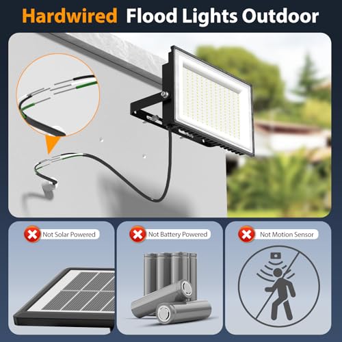 200W Ultra Bright Flood Lights Outdoor: Onforu LED flood light with 196 bright LEDs, producing up to 18000lm pure daylight white light. Good for yards, garages, and other buildings, providing security in the dark. With advanced high-efficiency LEDs, the outdoor flood lights save 80%-90% on electricity. No Dusk to Dawn, Motion Sensor, Switch, or Remote Control included