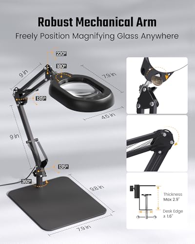 Versatile & Stable Setup: This magnifying lamp offers two convenient setup methods—a desk clamp for easy attachment to any desk or workbench, and a heavy-duty base for freestanding tabletop use. The versatile design ensures stability and adaptability, allowing you to position the lamp exactly where you need it, whether for professional tasks, hobby work, or book reading at home